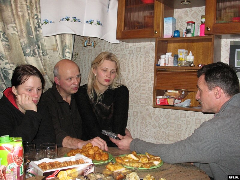 Праз гадзіну журналісты “Радыё Свабода” убачыліся з Аляксандрам Казуліным у ягонай кватэры, дзе стаяць партрэты Ірыны з чорнымі жалобнымі стужкамі. У момант сустрэчы былы кандыдат на прэзыдэнта даваў інтэрвію па тэлефоне.
