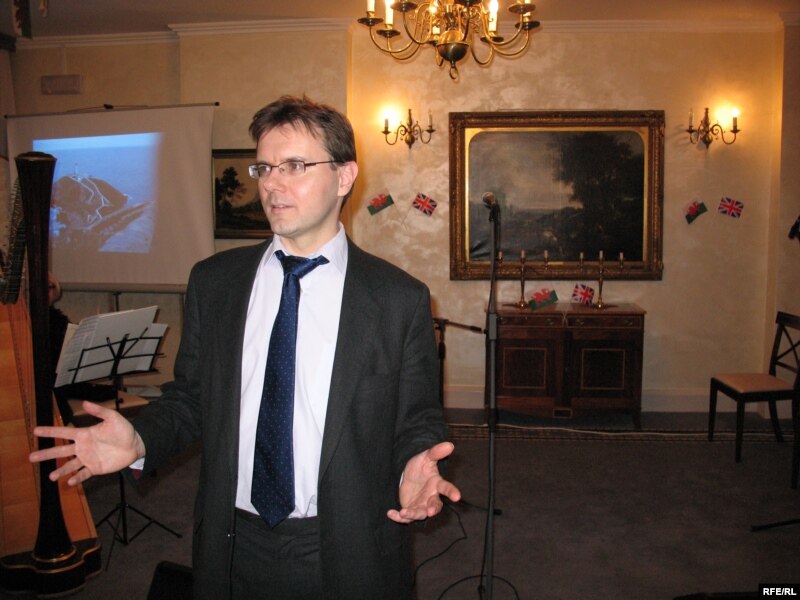 Удзельнік імпрэзы старшыня Таварыства беларускай мовы Алег Трусаў разважае пра Беларусь і Ўэльс:
