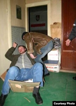 Палітык кажа, што міліцыянты ўжылі гвалт пасьля таго, як ён і Ігар Ходзька селі на пакунак з газэтай “Свабода”, каб ня даць яго вынесьці. Са слоў актывіста, яму разьбілі нос, а Ігар Ходзька страціў прытомнасьць.