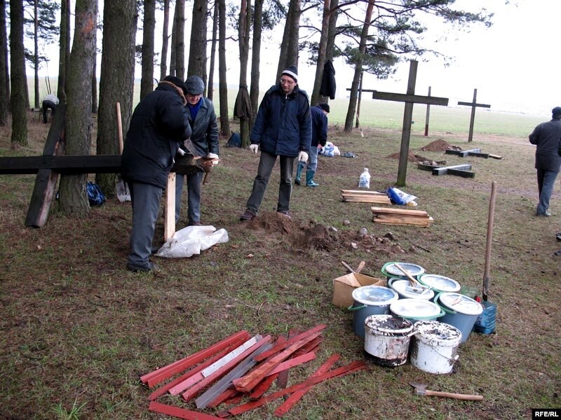 Яны аднаўлялі крыжы, якія былі зламаныя вандаламі.