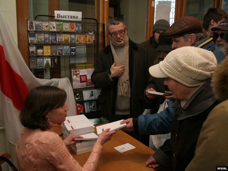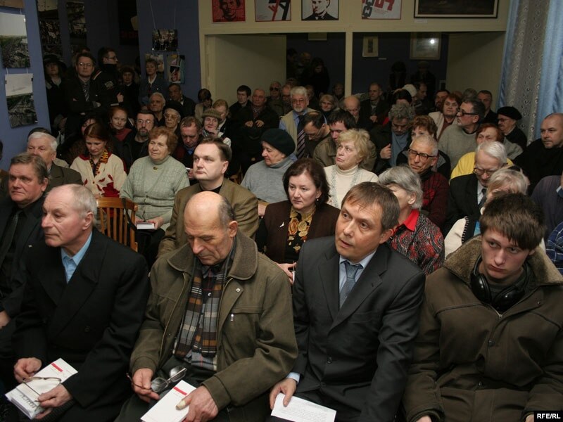 У залі сядзібы БНФ не было вольных месцаў -- сабралася каля 200 чалавек. Кніжку Івонкі Сурвілы можна было атрымаць адразу на ўваходзе.