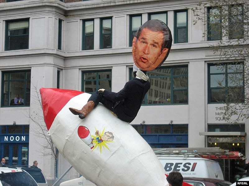Тым часам праціўнікі вайны наладзілі дэманстрацыю ў Вашынгтоне і шэрагу іншых гарадоў ЗША. Паведамляецца, што паліцыя затрымала дзесяткі пратэстоўцаў. Абодва кандыдаты на прэзыдэнта ЗША ад Дэмакратычнай партыі Гілары Клінтан і Барак Абама адзначылі пяцігодзьдзе пачатку ірацкай апэрацыі заявамі пра яе бессэнсоўнасьць, хаця яны не адмаўляюць, што ў Іраку павінен застацца абмежаваны кантынгент войскаў, які дапаможа нэўтралізаваць “Аль-Кайду”.
