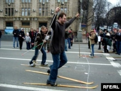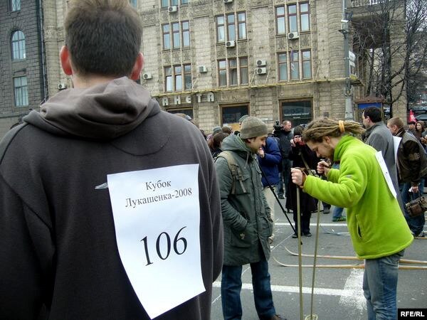 Такая акцыя адбываецца на галоўнай вуліцы ўкраінскае сталіцы ўжо другі раз. Пасьля трох адборачных забегаў і аднаго фінальнага перамагла дзяўчына з Кіева, прыз якой уручаў чалавек у масцы Аляксандра Лукашэнкі.