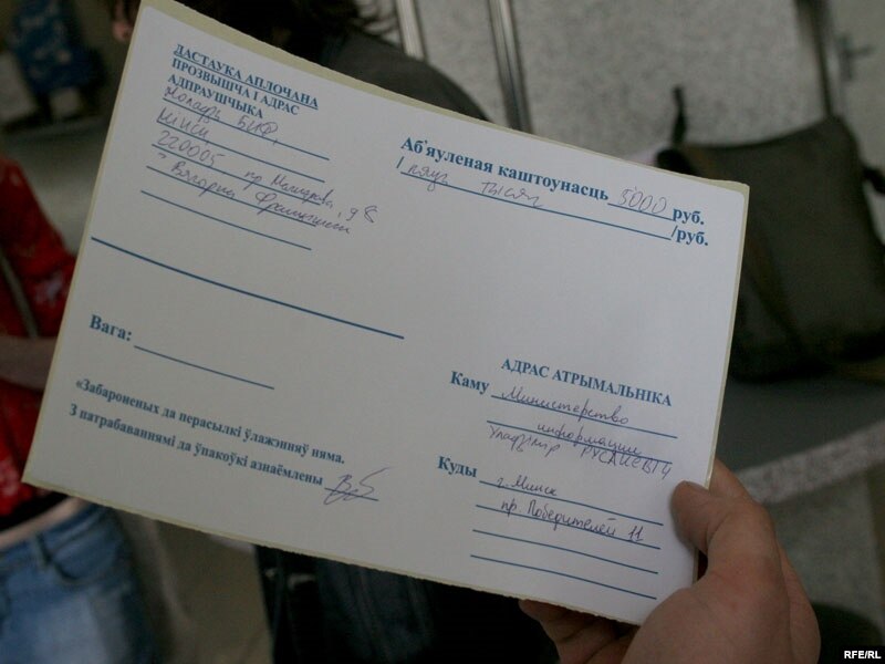У выніку пасылку прынялі. Супрацоўніца пошты паведаміла, што яе даставяць сёньня, альбо 7 траўня.