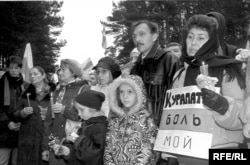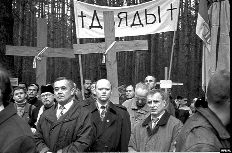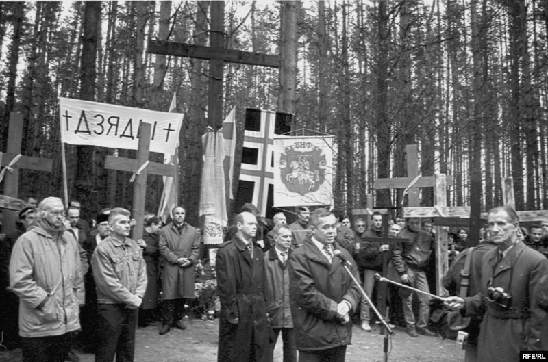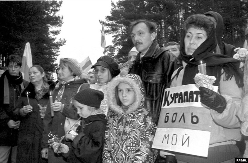 Здымак канстатуе мітынг-рэквіем, арганізаваны Кансэрватыўна-Хрысьціянскай Партыяй – БНФ у Курапатах. Фатаграфія адлюстроўвае цэнтральны сюжэт мітынгу.