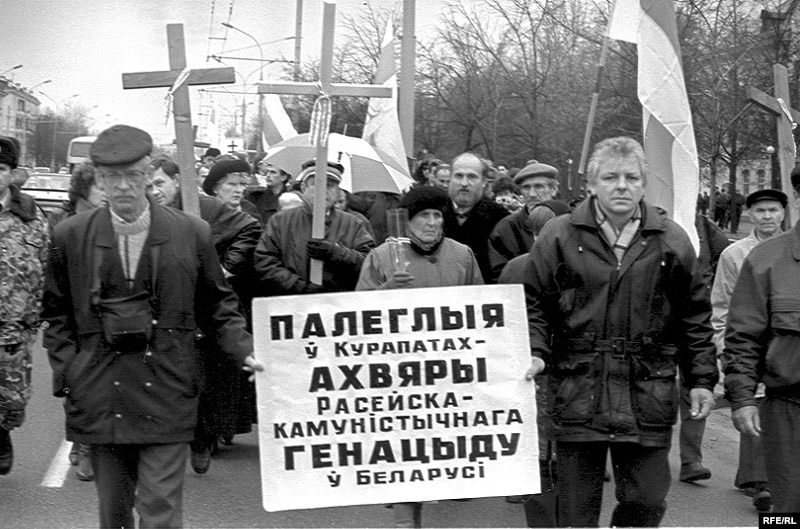 На фатаграфіі сюжэт з Крыжовага шэсьця на Курапаты. Фрагмэнт выглядае даволі ўрачыста. Тут канстатацыя падзеі, якая зь цягам доўгага часу (калі глядзець у архіўным вымярэньні) можа выклікаць эксклюзіўную цікавасьць пасьля зьмены жыцьцёвых абставінаў. (Маецца на ўвазе сьцяжок, мікрафон і інтэрвію ў М. Кляшторнай).