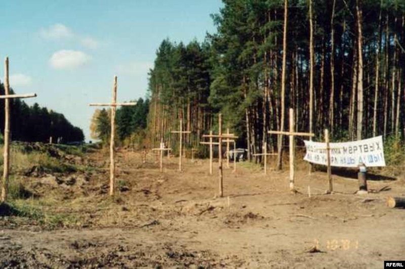 Па гэтым месцы праклалі аўтастраду праз Курапаты ў 2001 годзе. Будаўніцтва яе, ведаючы хаценьне верхняга начальніка, узгадніў цэлы легіён чыноўнікаў. Здымак зафіксаваў карціну антынароднага варварства і мэмарыяльных страт.