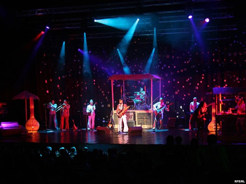 Сцэна была выкананая ў дэкарацыях экзатычнага пляжу. Музыкі выйшлі на сцэну ў вясёлых квяцістых кашулях. За барнай стойкай справа – вядучы канцэрту і “бармэн” Віктар Шалкевіч. У перапынку ён частаваў гледачоў напоямі, а напрыканцы канцэрту (ці ўсё ж спэктаклю?) кідаў у публіку бананы.