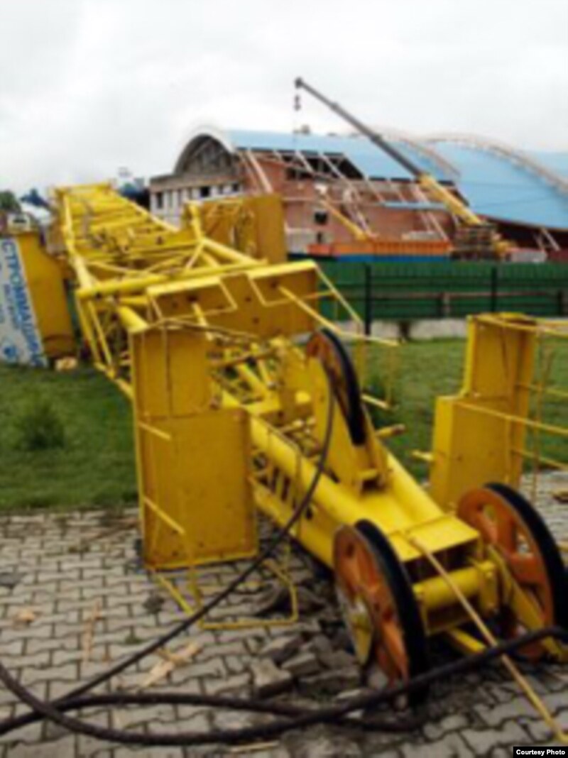 На храм абрынуўся вежавы кран, што задзейнічаны на будаўніцтве лёдавага палацу праз дарогу. У касьцёле разбураны дах, пашкоджаны пакой для прыёму гасьцей.