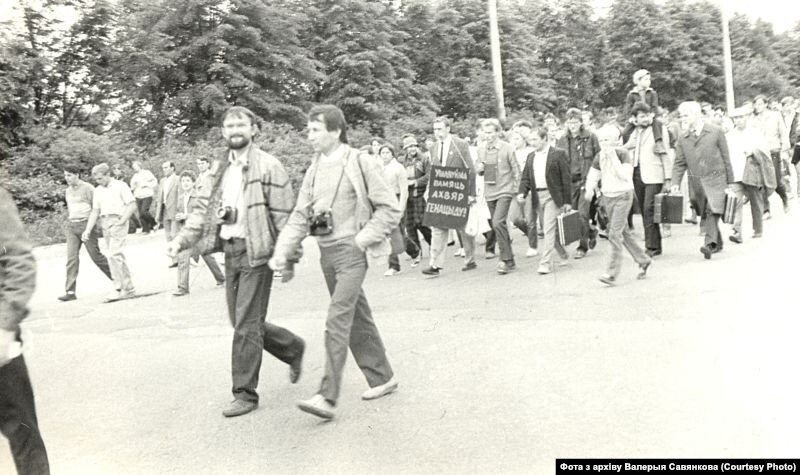 Перадгісторыя шэсьця такая. Адразу пасьля публікацыі артыкулу “Курапаты – дарога сьмерці” да мяне (на археалягічныя раскопкі ў Менску) прыйшлі хлопцы з “Талакі” (памятаю Сяргея Вітушку і Юрыя Лаўрыка) з ідэяй арганізаваць шэсьце і мітынг у Курапатах. Ніякіх шэсьцяў акрамя афіцыёзных тады ў Беларусі не рабілася. Мы ўзгаднілі лёзунгі і талакоўцы ўзяліся за справу.