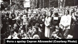 “Падавалі заяўку я і Віктар Івашкевіч, але мітынг быў забаронены. Нас выклікалі ў рэспубліканскую пракуратуру і папярэджвалі, што мы парушаем закон. Мне ўрэзалася ў памяць такая фраза, што калі вы будзеце пры ўладзе, то мы будзем ахоўваць і вас, і вашыя законы. Міліцыя была на гэтым мітынгу, але ніякіх рэпрэсіяў не было, а мы заплацілі па 50 рублёў штрафу. Шэсьце было прызначанае каля трамвайнага кольца ў Зялёным Лузе, і адтуль ужо людзі пехатою ішлі ў курапацкі лес. Гэта быў доўгі, доўгі ланцужок людзей. Мы тады вельмі зьдзівіліся, як магло сабрацца так шмат людзей. Тысячы людзей прыйшлі”.
