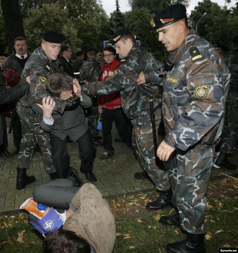 18.35 Калі дэманстранты пад ціскам спэцназу дайшлі да вуліцы Янкі Купалы, спэцназаўцы разьбілі натоўп па 2 групы і накінуліся на іх. На адным баку вуліцы зьбівалі дзяўчат і Анатоля Лябедзьку, на другім – Франака Вячорку. Яго павалілі на зямлю і некалькі разоў ударылі нагамі ў пах. Ягоны бацька хацеў прыкрыць сына, але яго таксама зьбілі. Людзі скандавалі “Фашысты”.