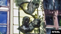 “Хацелася стварыць сымбаль і зямной долі чалавека — Быкава, і ягонага творчага духу. Таму на дошцы скульптурныя выявы галавы пісьменьніка, які нібыта глядзіць уніз, і жорава, які вольна ўзьлятае”, — апісвае твор Валеры Магучы.