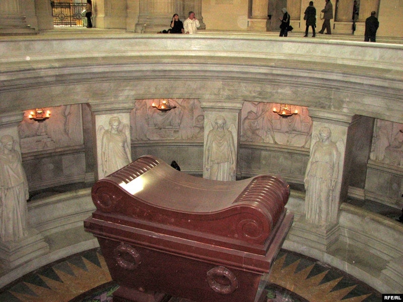 Сам Напалеон ляжыць у вялікім памяшканьні ў Доме інвалідаў, адразу за касьцёльным алтаром. Саркафаг ягоны з крывава-чырвонага мармуру. Месца крыху змрочнае.