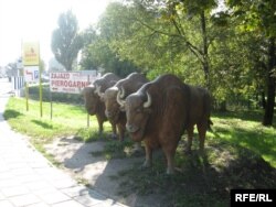 А яшчэ на вуліцах пушчанскай Гайнаўкі шмат зуброў. Праўда, з плястыку. Гэта рэкляма, але не Белавескай пушчы, а піўной кампаніі. Што ж да Белавескай пушчы, то Гайнаўка мае, відаць, самую ўнікальную яе мапу, дзе назвы беларускіх гарадоў і вёсак напісаныя “па-свойму”.