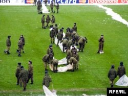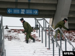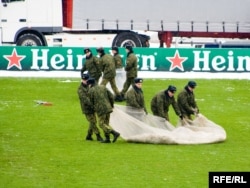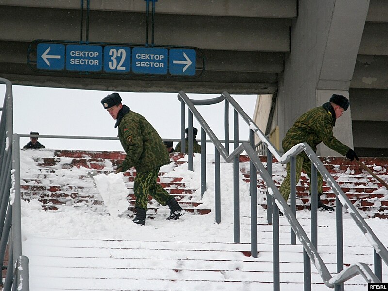 У той час, як малады настаўнік БАТЭ сустракаўся з журналістамі, сотні салдатаў тэрміновай службы намагаліся прывесьці да ладу засьнежаную арэну стадыёну “Дынама”. Адны шуфлямі зграбалі з поля сьнег, іншыя чысьцілі абледзянелыя трыбуны.