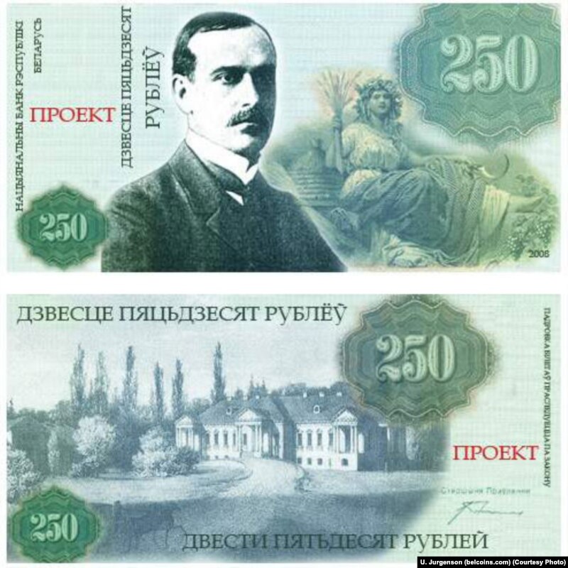 Так, на інтэрнэт-старонцы фінансавага парталу www.infobank.by зьявілася партрэтная галерэя на банкнотах, якія ў тэорыі маглі б замяніць цяперашнія разьліковыя адзінкі. Аўтар гэтага дызайнэрскага праекту-прапановы грашовых купюраў — Усевалад Юргенсан, які стала супрацоўнічае з нумізматычным парталам “Ізрой” (belcoins.com).