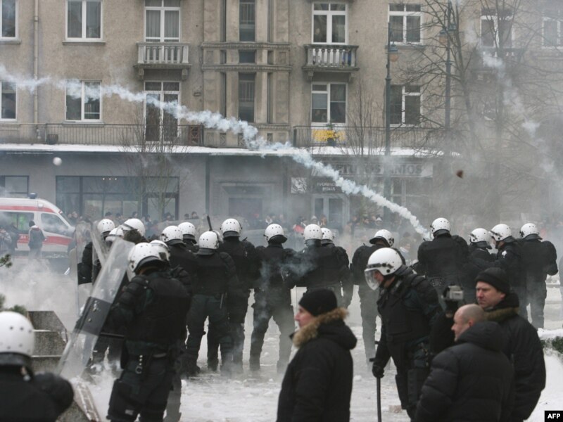 Адбыліся сутычкі дэманстрантаў за паліцыяй. Паранены адзін паліцыянт і некалькі пратэстоўцаў. Пратэстоўцы сабраліся ля парлямэнту, некаторыя зь іх кідалі ў будынак яйкі, сьняжкі і бутэлькі з кактэйлем Молатава. Пабітыя больш за 10 вокнаў. Міліцыя разагнала дэманстрантаў з выкарыстаньнем сьлезацечнага газу і гумовых куль.