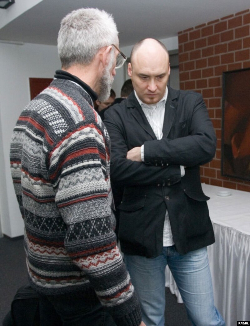 Гутарка ў кулюарах. Справа — Валянцін Стэфановіч