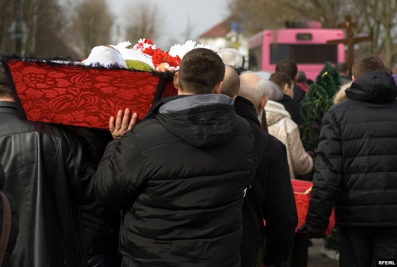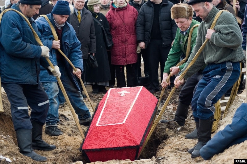 14:35 Пахавальная працэсія прыехала на могілкі. Пачынаецца грамадзкая паніхіда.