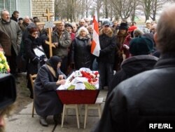 15:15 Пасьля таго, як труну апусьцілі ў зямлю, прысутныя прасьпявалі гімн “Магутны Божа”.