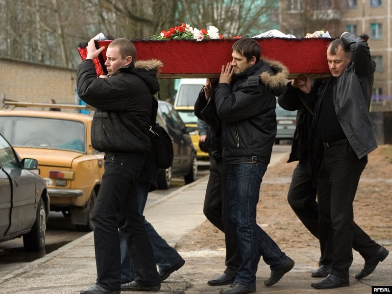 14:10 Пахавальная калёна рушыць па вуліцы Ўзьбярэжная, на якой жыла Палякова. Руху ніхто не перашкаджае. У калёне – каля сотні чалавек. Пахаваюць Палякову на гарадзкіх могілках Дубеі.