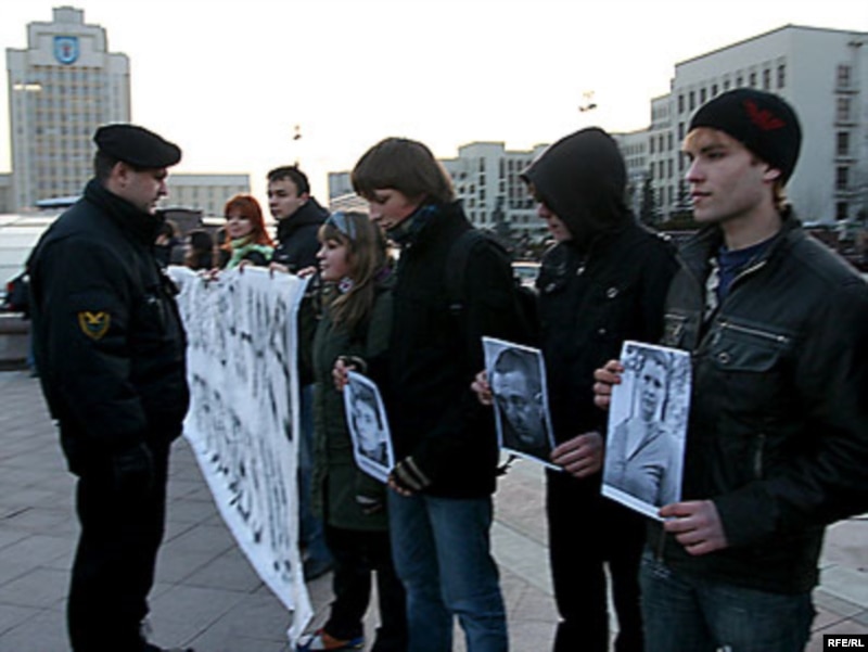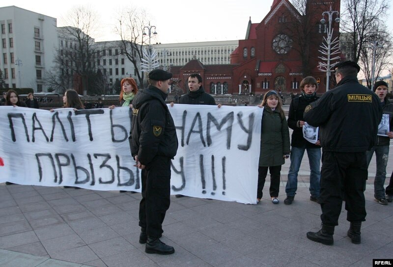 А ўвечары на Кастрычніцкім пляцы – яшчэ адна акцыя. Там зьбіраюцца актывісты "Маладой Беларусі", руху "Джынс за свабоду", кампаніі "Эўрапейская Беларусь", а таксама "Вольная моладзь".