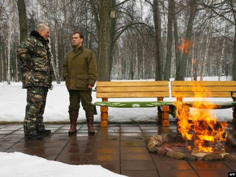 Перад адлётам Лукашэнкі ў Менск Аляксандар Лукашэнка й Дзьмітры Мядзьведзеў прагуляліся па лесе ў Завідаве. Паводле беларускага тэлебачаньня, тутэйшыя запаведныя лясы — “самае чыстае месца на плянэце”.