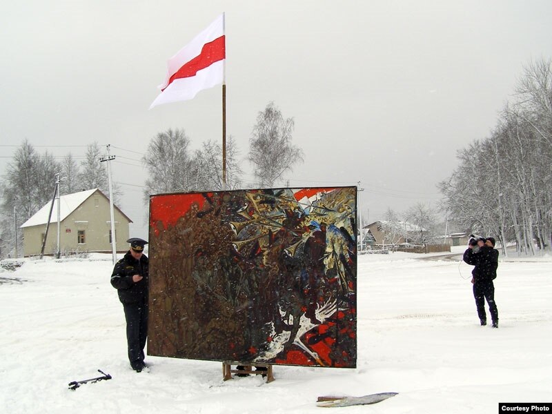 На цэнтральнай плошчы мястэчка Бобр мастак Алесь Пушкін намаляваў карціну “Незалежнасьць”. Такім чынам, ён адсьвяткаваў 25 сакавіка. |