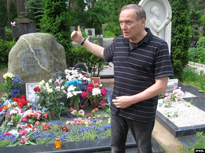 15-я гадзіна дня. Магіла Васіля Быкава была ўжо ў кветках, калі тут сабраліся сябры Быкава, палітыкі, журналісты. Белыя і чырвоныя гвазьдзікі ыўсклала ўдава пісьменьніка Ірына Міхайлаўна Быкава, пачаўся імправізаваны мітынг памяці.