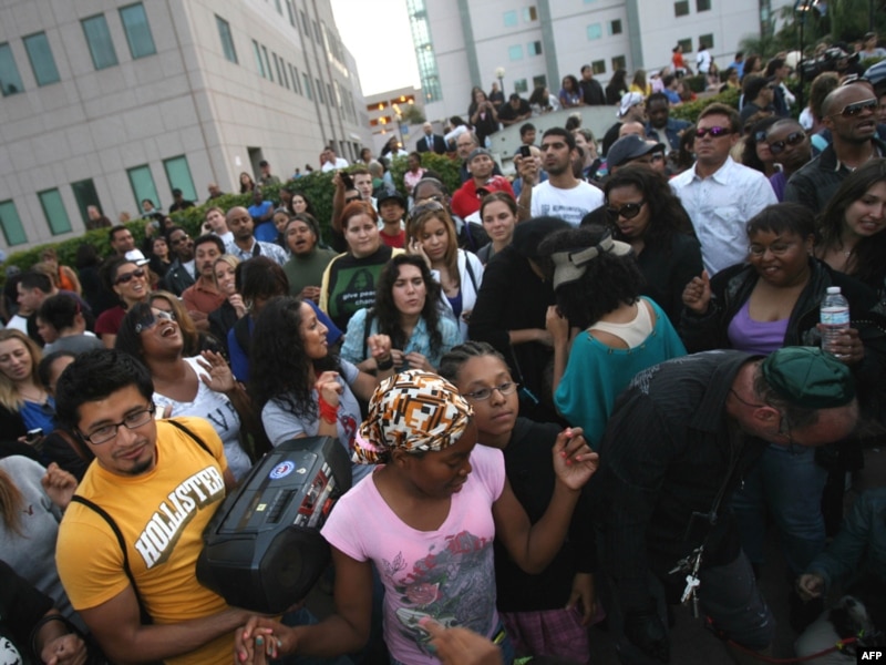 Каля дома Джэксана зьбіраюцца тысячы прыхільнікаў яго таленту са сьвечкамі ў руках.