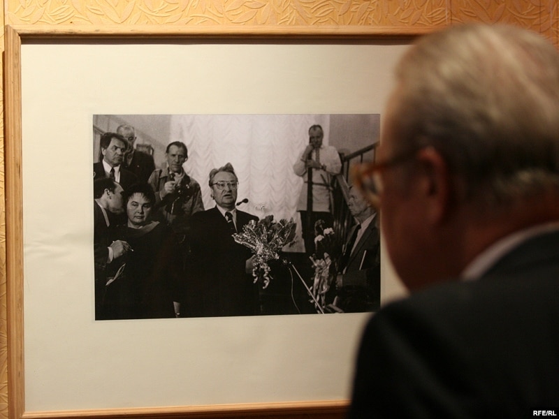 У фальварку "Добрыя мысьлі сабралася больш як 20 чалавек – сярод іх Генадзь Бураўкін, Уладзімер Някляеў, удава Васіля Быкава Ірына Міхайлаўна, іншыя прадстаўнікі інтэлігенцыі. Фотамастак Яўген Коктыш пачаў рабіць здымкі Васіля Быкава ад 82-га году ў Горадні: ён казаў, што Быкаў вельмі не любіў, калі яго здымаюць, але яму ўдалося пераадолець гэтую быкаўскую нелюбоў і нават пасябраваць зь ім. На фота Быкаў і ў вёсцы, і за пісьмовым сталом, і з сялянамі, і з пісьменьнікамі... Сваімі ўражаньнямі дзеліцца паэт Генадзь Бураўкін: