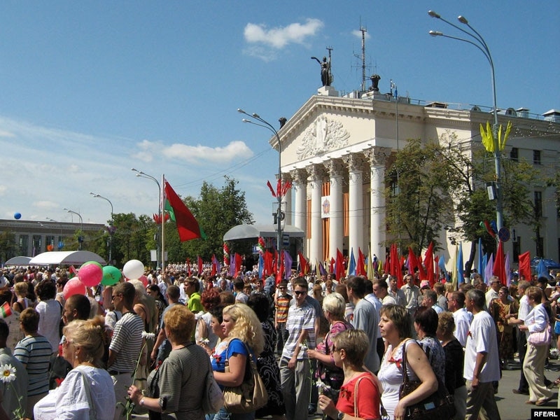 Сёньня ў Гомелі да афіцыйнага Дня незалежнасьці ладзілася масавае шэсьце з удзелам вайсковых частак мясцовага гарнізону, вэтэранаў, чыноўнікаў і працоўных калектываў.
