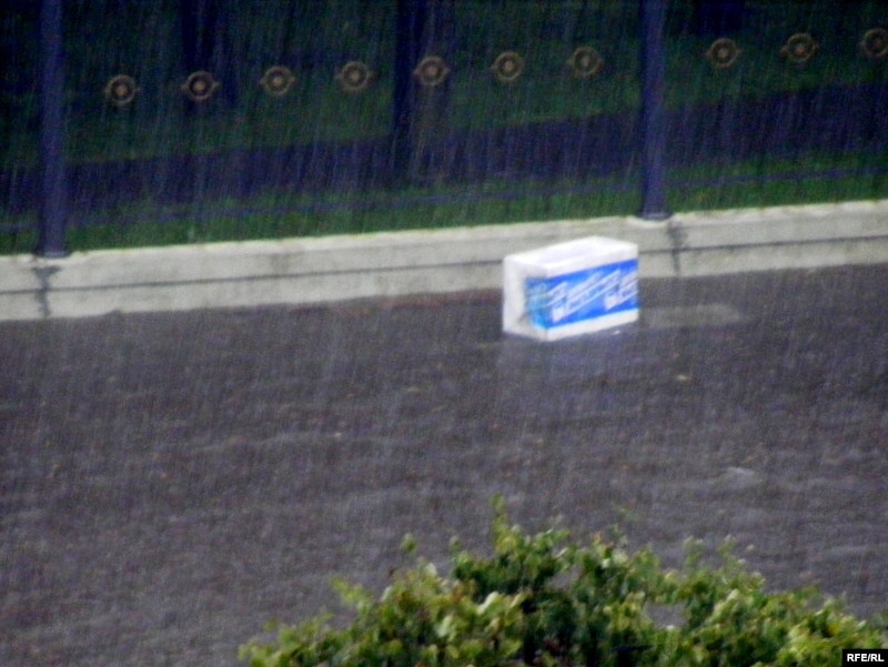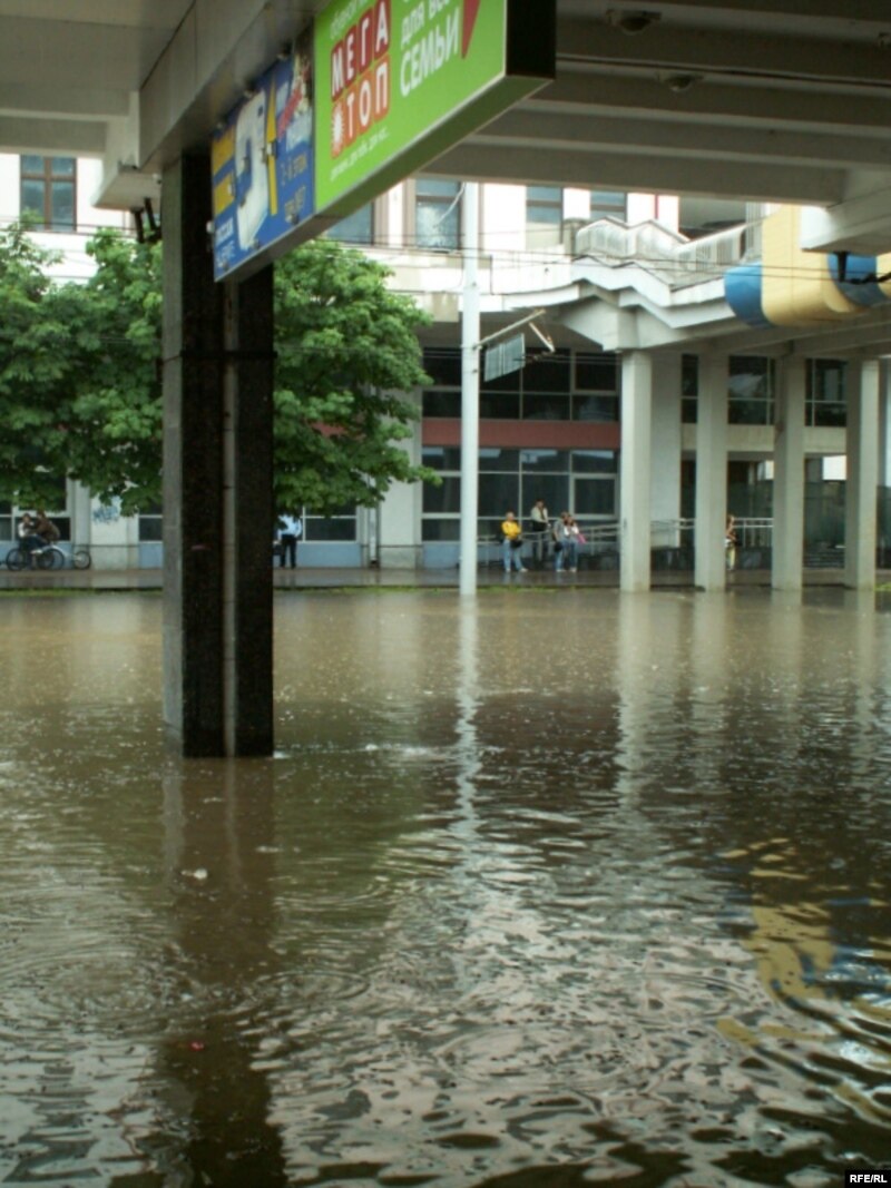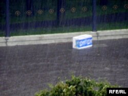 14.55 У Менску пачалася залева. Празь некалькі хвілінаў вада заліла праспэкт Незалежнасьці. На вуліцах утварыліся заторы.