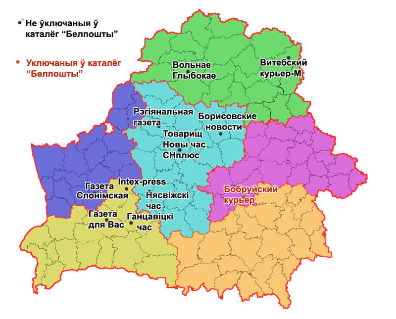 На сёньня толькі “Бобруйский курьер” здолеў аднавіць супрацоўніцтва з дзяржаўным распаўсюднікам, зазначае прэсавая службе Беларускай асацыяцыі журналістаў.