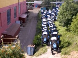 Застаўленая трактарамі тэрыторыя Менскага трактарнага заводу