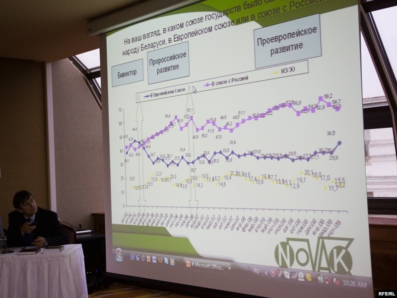 Калі перад жыхарамі Беларусі паставіць пытаньне: на што ім трэба арыентавацца — на Расею, Захад альбо самастойную дзяржаву — то бачна, што падвышаецца колькасьць людзей, зарыентаваных на сувэрэнітэт. Калі ж у якасьці арыентыраў пакінуць толькі Маскву і Брусэль, то, як сьцьвярджае Андрэй Вардамацкі, розныя катэгорыі насельніцтва дыямэтральна па-рознаму і арыентуюцца. Напрыклад, моладзь, людзі з вышэйшай адукацыяй, а таксама жыхары Берасьцейскай і Гарадзенскай абласьцей адназначна скіраваныя на Захад. І наадварот, сталыя і малаадукаваныя людзі, а таксама жыхары ўсходніх рэгіёнаў выразна зьвязваюць свае надзеі з Масквой.