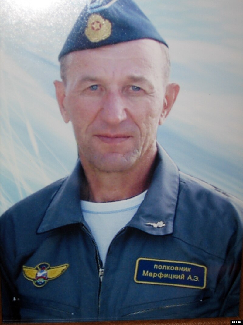 З 70-ых гадоў каля вайсковай часткі, дзе служыў Аляксандр Марфіцкі, стаіць помнік-самалёт загіблым лётчыкам.