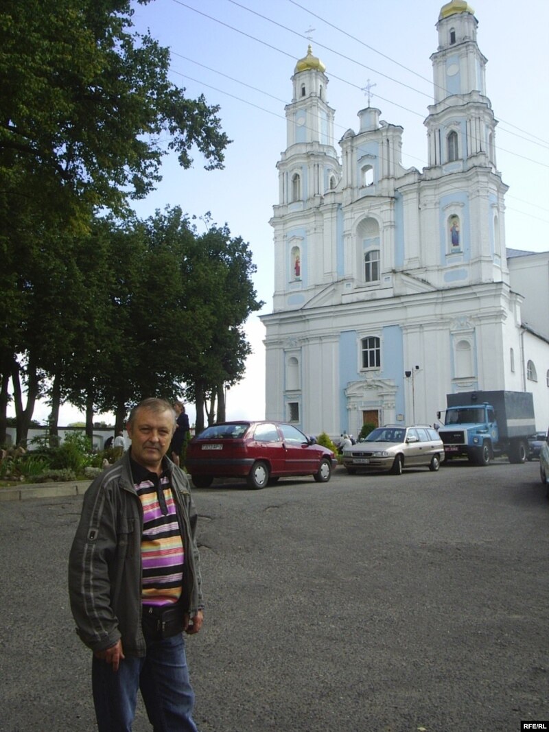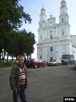 Мы сустрэліся зь ім каля таго самага сабору Раства Найсьвяцейшай Багародзіцы. Краязнаўца паказвае, што побач зь белым тынкаваным будынкам дзейнага храму захаваўся яшчэ адзін, складзены некалі з чырвонай цэглы і дагэтуль не адрэстаўраваны. Ён таксама належыць да былога манастырскага комплексу, і менавіта тут мясьцілася польская ўправа. А яшчэ цягам стагоддзяў тут была турма, і гэтая акалічнасьць наштурхнула спадара Уладзімера на такія развагі: