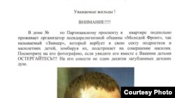 Пад партрэтам зроблены допіс, у якім указваецца нумар дома і кватэры, дзе жыве З.Дашкевіч. Таксама ва ўлётцы сказана, што ў гэтай кватэры “падпольна пражывае арганізатар псэўдарэлігійнай абшчыны “Малады фронт”, так званы “Зьміцер”, якія вярбуе ў сваю сэкту падлеткаў і малалетніх дзяцей, замбуючы іх, падахвочвае іх на зьдзяйсьненьне гвалту”.