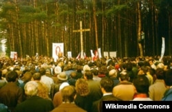 У Курапатах гучэў Рэквіем. Пад гукі Рэквіему паднялі і паставілі Крыж. Дзясяткі людзей кінуліся дапамагаць, кожны хацеў дакрануцца да яго рукой. Потым сьвятары ўсіх чатырох хрысьціянскіх канфэсіяў, па чарзе, асьвяцілі Крыж. Ад каталікоў – ксёндз Уладзіслаў Завальнюк, ад пратэстантаў – пастар Эрнэст Сабіла.... Вуніяцкія дзяўчаты зь белымі кветкамі пад камандай ксяндза Яна Матусевіча сьпявалі беларускія Псальмы. А з праваслаўнага сабору ў Менску прыехала цэлая каманда зь пяці ці шасьці духоўных асобаў і адслужылі цэлую службу з кадзілам і песьнясьпевамі.