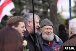 На месцы збору зьявіўся былы кіраўнік Партыі БНФ Лявон Баршчэўскі.