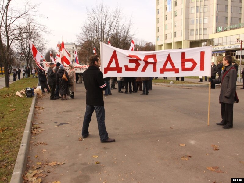 10.50 На пляцоўцы — лідэр руху «За свабоду» Аляксандар Мілінкевіч, Іна Кулей, супрацоўнікі камітэту дапамогі палітрэпрэсаваным.