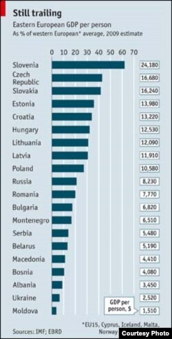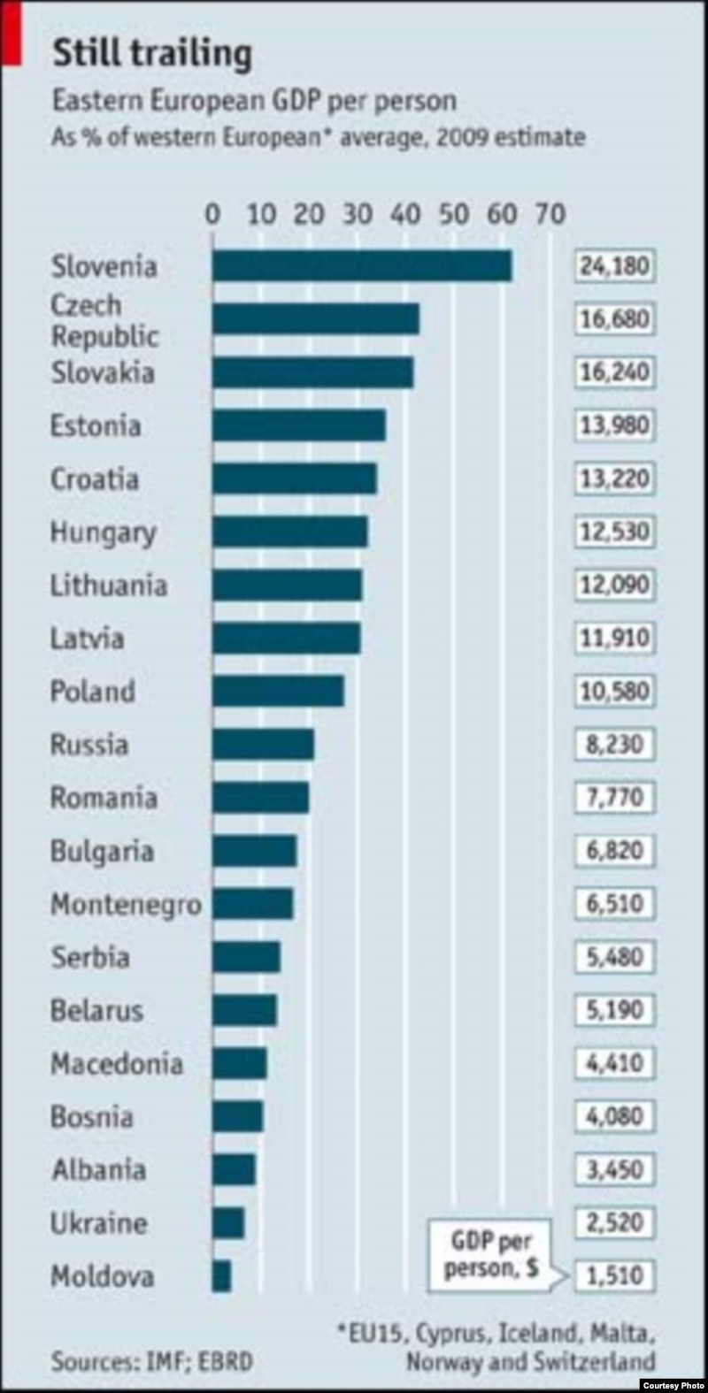 Галоўная выснова артыкула ў тым, што нягледзячы на тое, што краіны Цэнтральнай ды Ўсходняй Эўропы эканамічна зараз пачуваюцца значна лепш, чымся ў 1989 годзе, многія зь іх усё адно маюць ня надта прывабны імідж бедных краінаў. Напрыклад, Беларусь, хаця й паказвае меншае падзеньне ВУП за суседнюю Літву, у агульных лічбах адстае ад большасьці колішніх хаўрусьнікаў па сацлягеры.