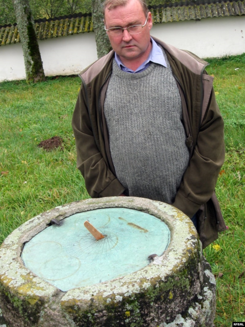 Гамана пра адзіны, што захаваўся ў краіне, сапраўдны сонечны гадзіньнік. І хоць у Нясьвіжы ёсьць трактат на лаціне, дзе дакладна апавядаецца пра мэханізм яго вырабу, дагэтуль не было ніводнага матэрыяльнага сьведчаньня, каб у нас вымяралі час такім чынам. Уладзімір дасьледаваў гісторыю знаходкі і самога паселішча, пра што падрыхтаваў артыкул у тоўсты часопіс. Для слухачоў “Свабоды” — найбольш цікавыя факты. Мы, дарэчы, стаім перад пабудовай у форме мэталёвага слупа, крыху вышэйшага за мэтар, з градуснай разьметкай па ўсёй акружнасьці.