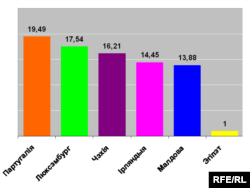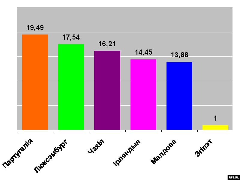 Спажываньне алькаголю ў літрах на душу насельніцтва (дадзеныя 2004 году)