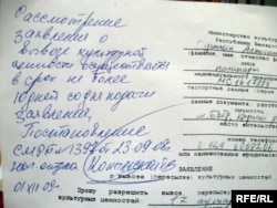 Паводле закону Міністэрства культуры дае дазвол на вываз за мяжу культурных каштоўнасьцяў, у тым ліку малюнкаў, якія належаць іх аўтарам. Мастак Алесь Пушкін афіцыйна зьвярнуўся па такі дазвол у Міністэрства культуры Беларусі. Мастак прасіў дазволу на часовы вываз 17 сваіх малюнкаў, адабраных спэцыялістамі музэю сучаснага мастацтва гораду Кальмар у Швэцыі. Выстава мае адчыніцца 4 сьнежня. Сёньня, 1-га сьнежня, аўтар плянаваў выправіцца за мяжу разам з малюнкамі. Заяўку разглядала загадчыца аддзелу міністэрства Таісія Капыльская.