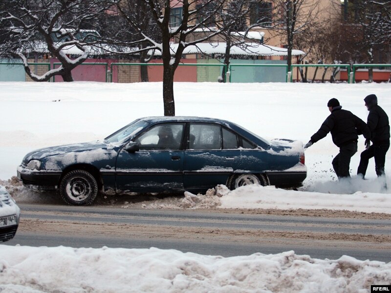 Моцны сьнегапад і завіруха накрылі Менск на выходных. Камунальныя службы не спраўляліся са сваімі абавязкамі. І як вынік шмат праблемаў узьнікла ў аўтамабілістаў.