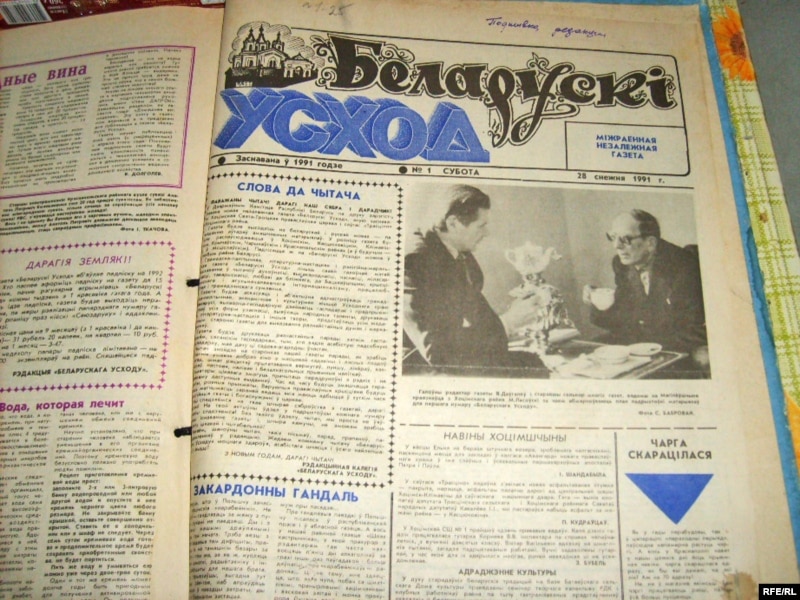 Першая паласа першага нумара «Беларускага ўсходу» (28 сьнежня 1991 году)