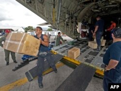 На фота: разгрузка гуманітарнай дапамогі ў аэрапорце сталіцы Гаіці, Порт-о-Прэнс
